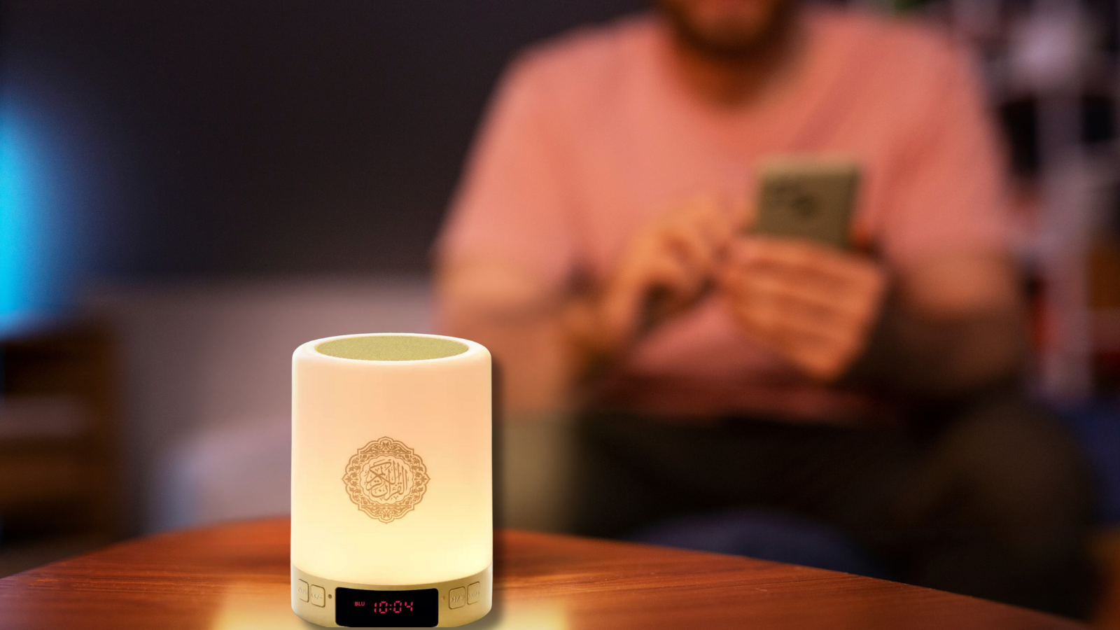 Veilleuse coranique avec enceinte intégrée, diffusant de belles récitations du Coran accompagnées d’une lumière douce et apaisante. Idéale pour le sommeil, la méditation et l’apprentissage spirituel des enfants et des adultes, elle crée une ambiance sereine, rassurante et propice au recueillement quotidien, à la maison ou avant le coucher.