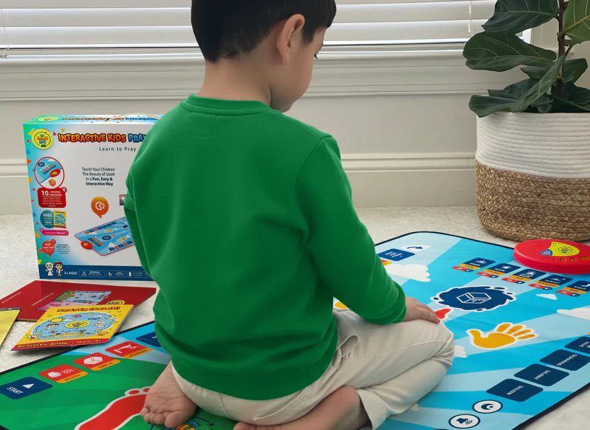 Tapis de prière interactif et intelligent pour enfants, avec traduction audio des prières. Apprend les mouvements, améliore la concentration, rend l’apprentissage ludique, éducatif et spirituel, tout en encourageant l’autonomie et l’amour de la prière au quotidien.